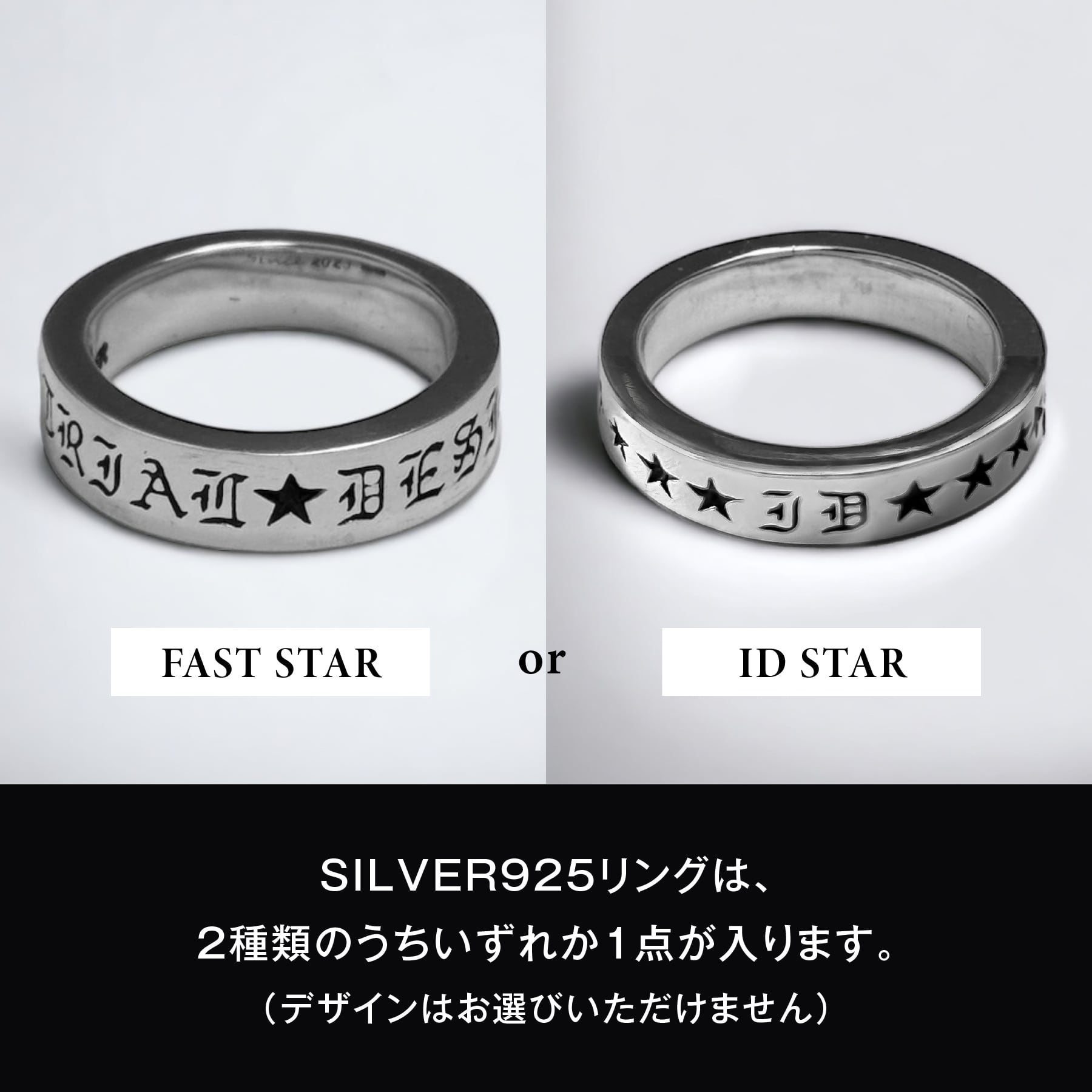 SILVER925リング(1点)と、アパレルアイテム(長袖+半袖 合計5点)が入った特別パッケージ。