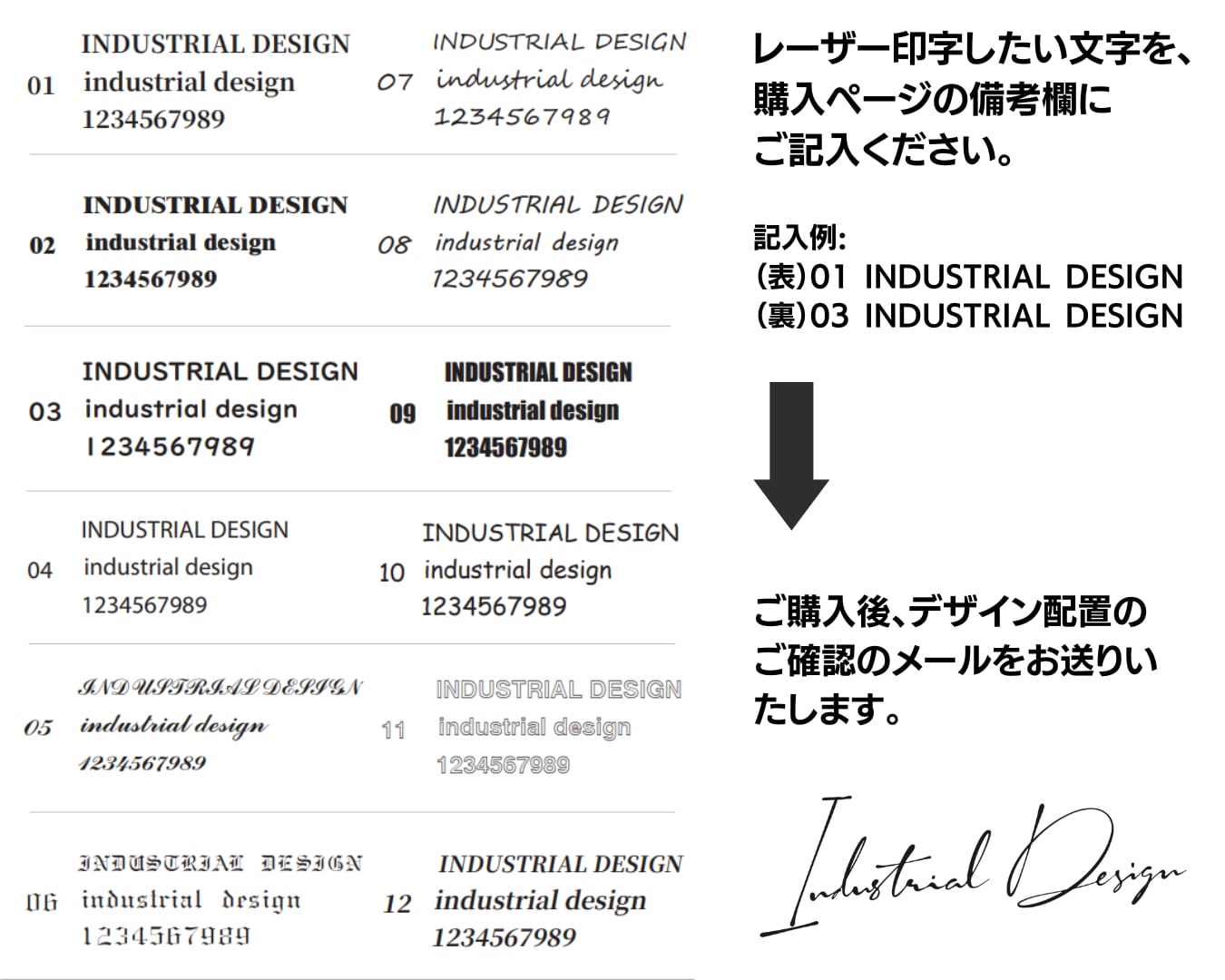 ※レーザー文字刻印の場合、商品画像最終ページよりテンプレート文字を、