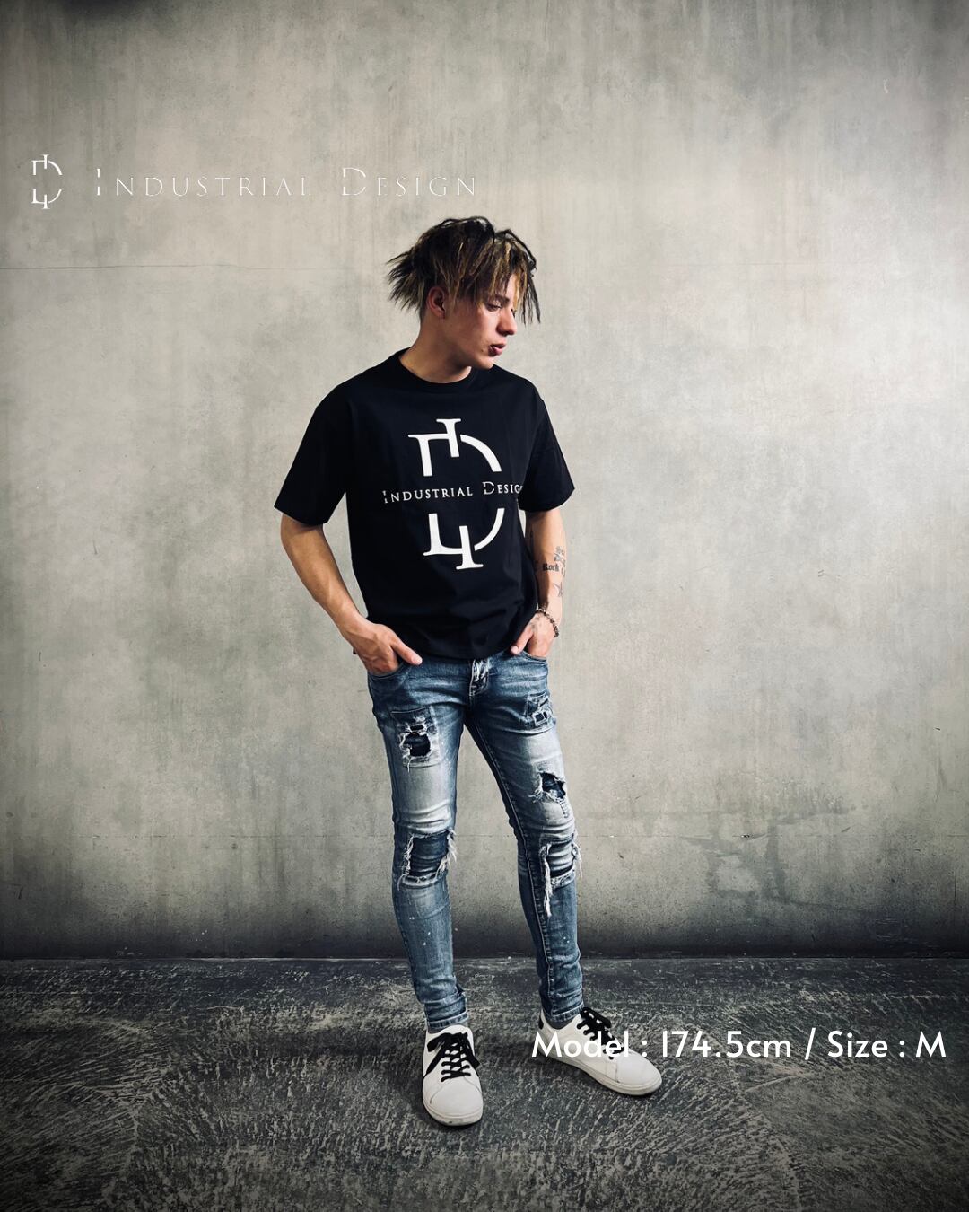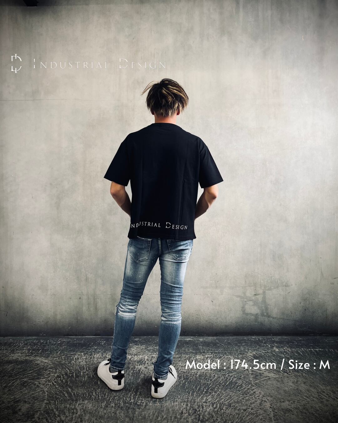 前面と背面にIndustrial Designのロゴが入った、ビッグシルエットTシャツ。