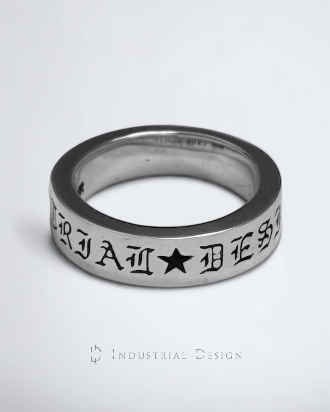 INDUSTRIAL DESIGNをオールドイングリッシュで配置し、その真ん中には星をデザイン。