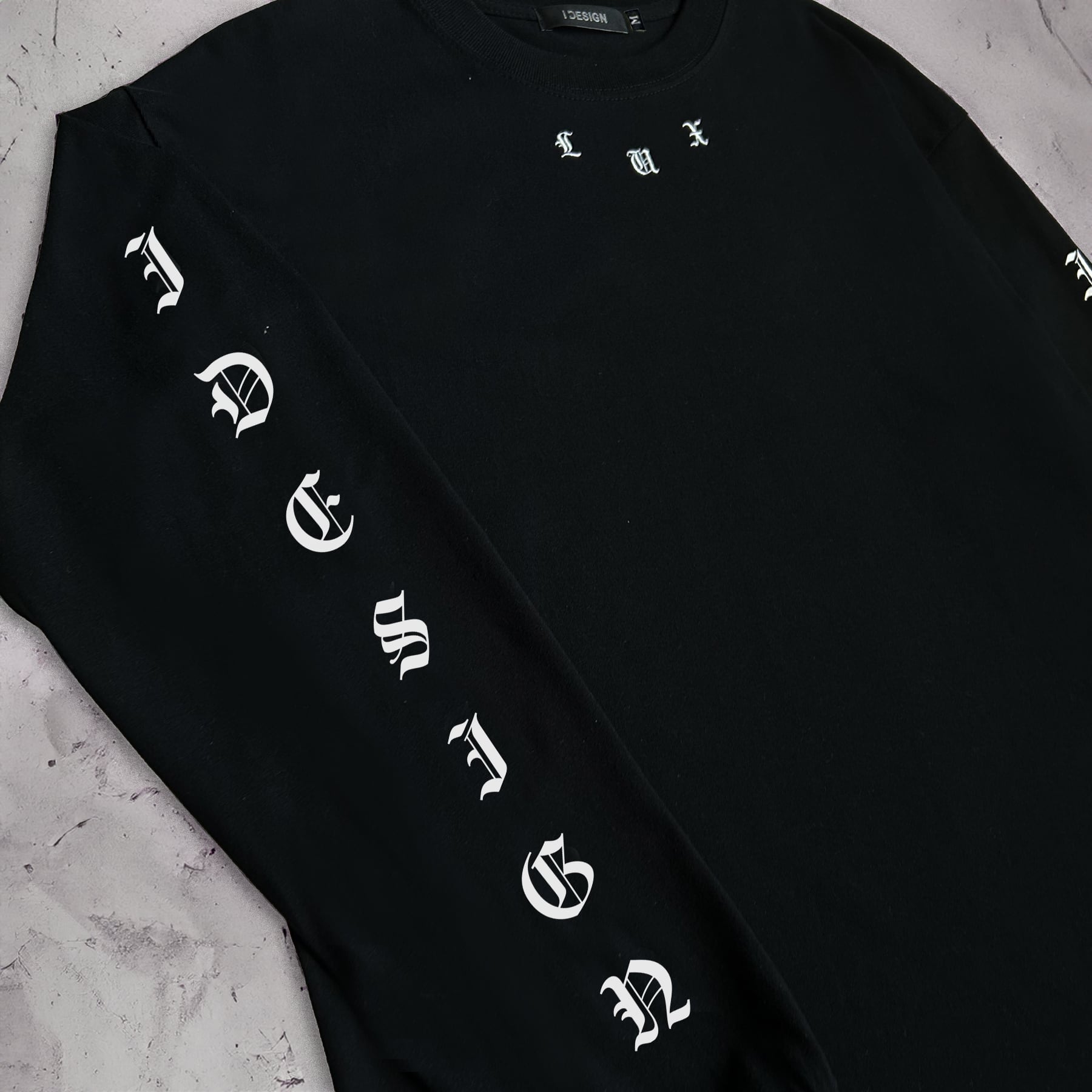 IDESIGN ブラックレターロングスリーブT(BLACK)